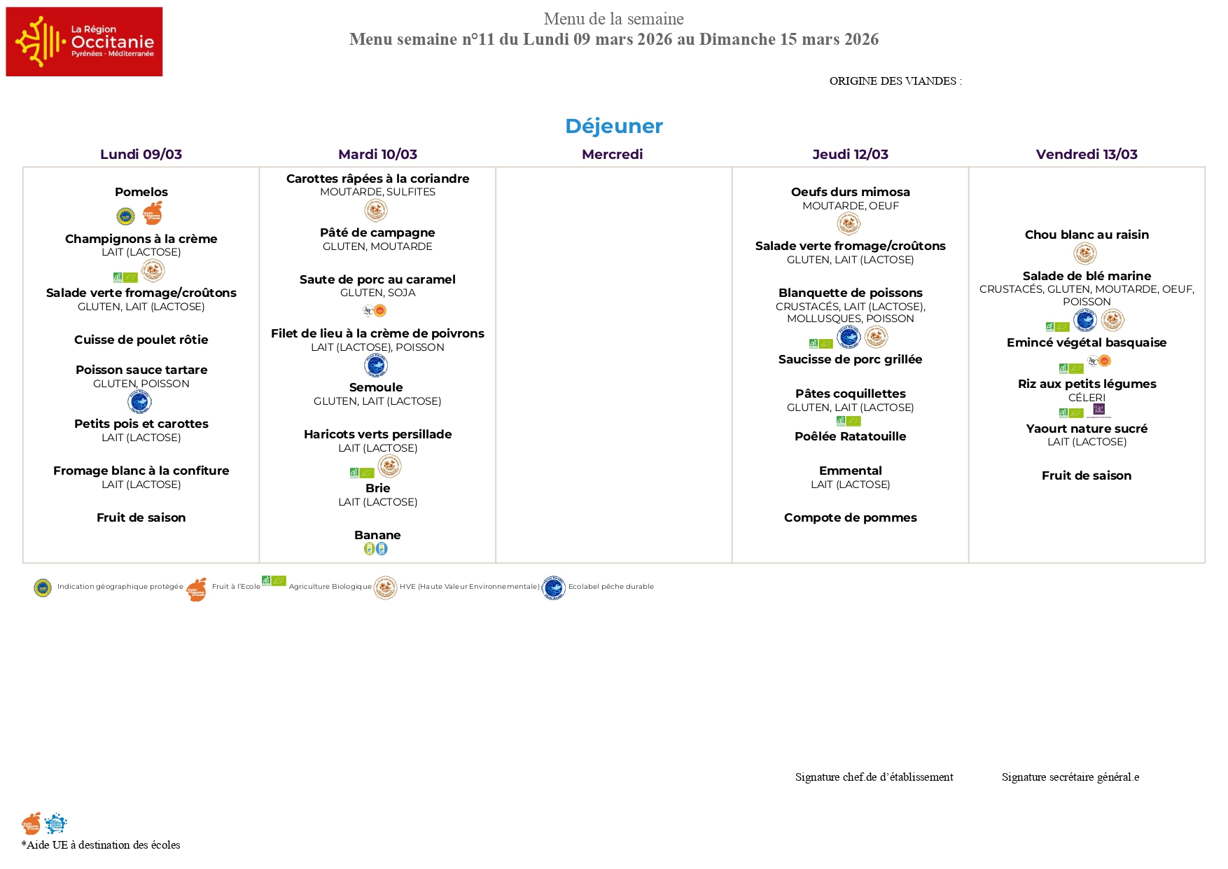Le menu de la semaine